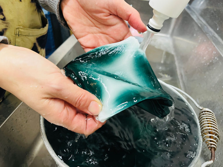 Making a large 100% cotton wrapping cloth (83 cm x 90 cm) using a shibori technique called Sekka-shibori.